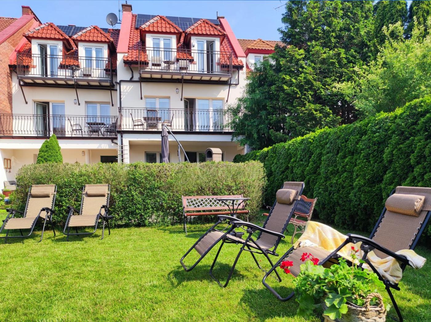 Apartament z balkonem. Boasting a private entrance, this apartment features 1 living room, 1 separate bedroom and 1 bathroom with a walk-in shower and a hairdryer. Guests will find a stovetop, a refrigerator, a dishwasher and kitchenware in the well-fitted kitchen. The apartment also comes with a barbecue. Featuring a balcony with garden views, this apartment also features a washing machine and a flat-screen TV with streaming services. The unit has 2 beds. Apartament - 4 osobowy. Powierzchnia pokoju ok.: 42 mkw.